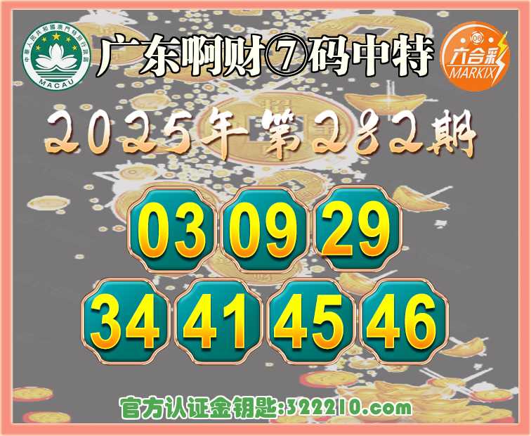 282期: 📙『广东啊财』 📙⑦码中特📙【03.09.29.34.41.45.46】开:41
