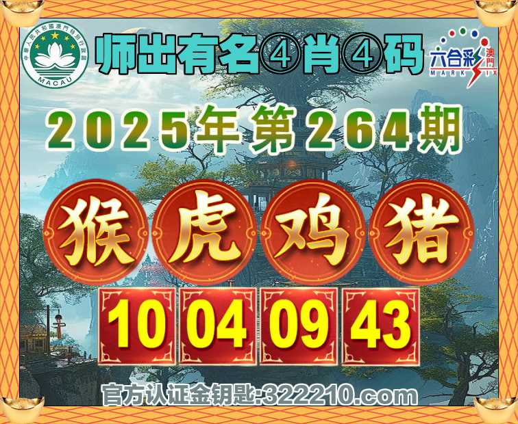 264期:『师出有名』 ♥️④肖④码♥️【猴虎鸡】【10.04.09.43】开:猪43
