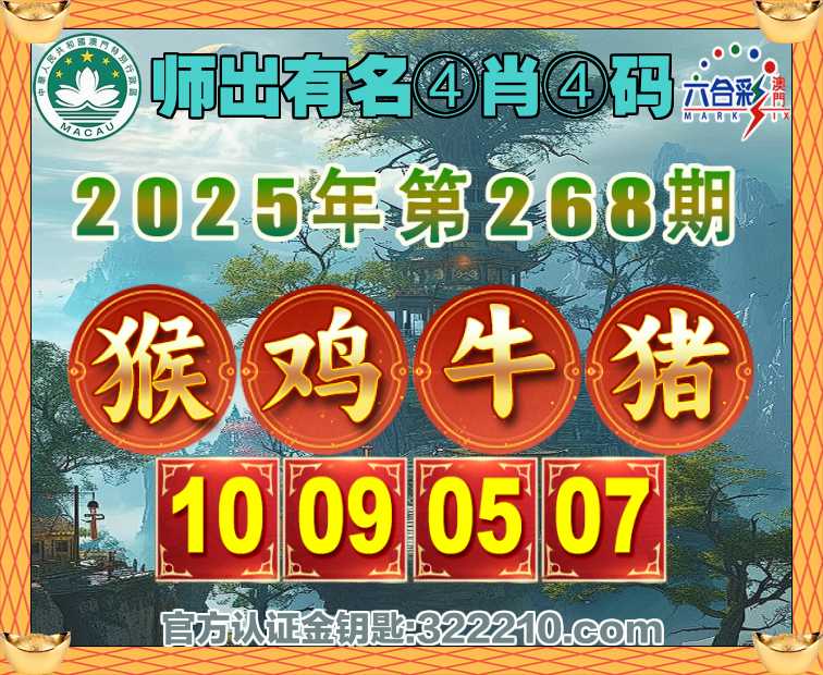268期:『师出有名』 ♥️④肖④码♥️【鸡牛猪】【10.09.05.07】开:猴10