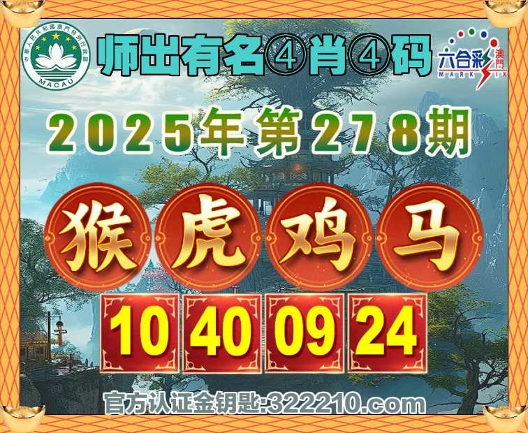 278期:『师出有名』 ♥️④肖④码♥️【猴鸡马】【10.40.09.24】开:虎28